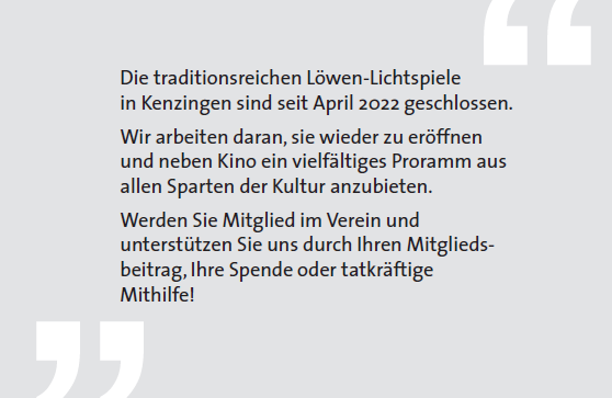 zur Wiedereröffnung der Löwen-Lichtspiele Kenzingen als „Löwen Kenzingen – Kino und mehr“ werden seit 2022 gefördert von